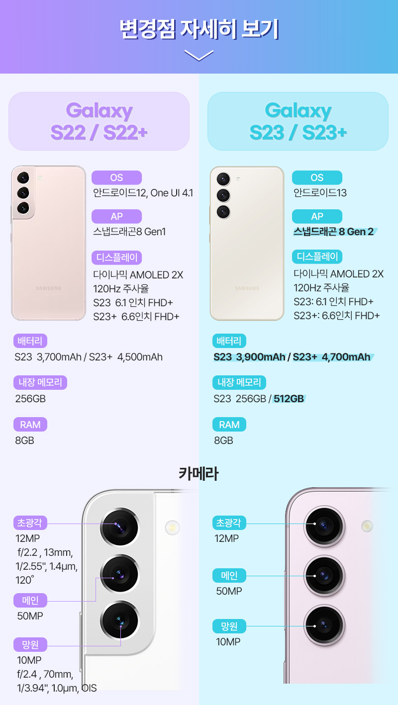 갤럭시 S23 시리즈의 주요 변경 된 점 알아보기!