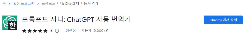 프롬프트 지니(크롬 확장프로그램) 링크 :