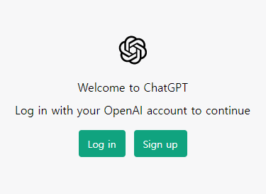 위 주소를 통해 챗 gpt 사이트에 접속을 하고 'Sign up' 버튼을 클릭해 가입을 진행합니다.